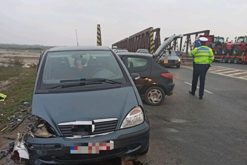 Accident cu două autoturisme implicate, pe E85
