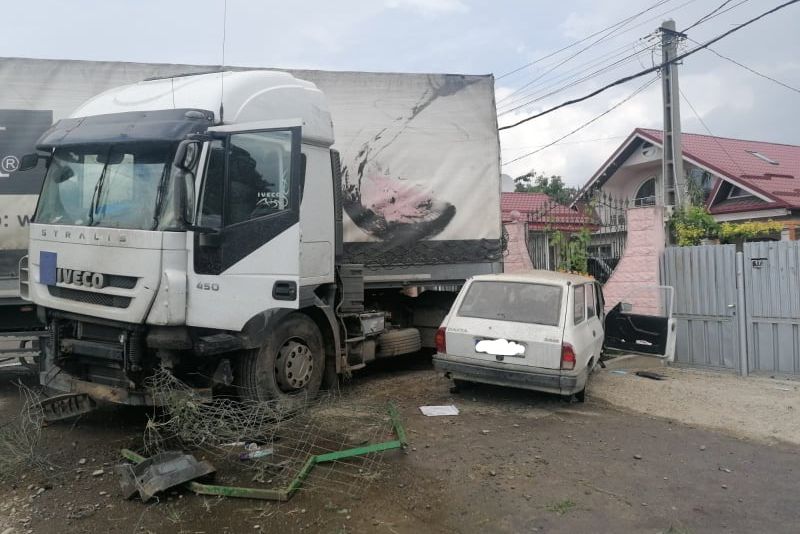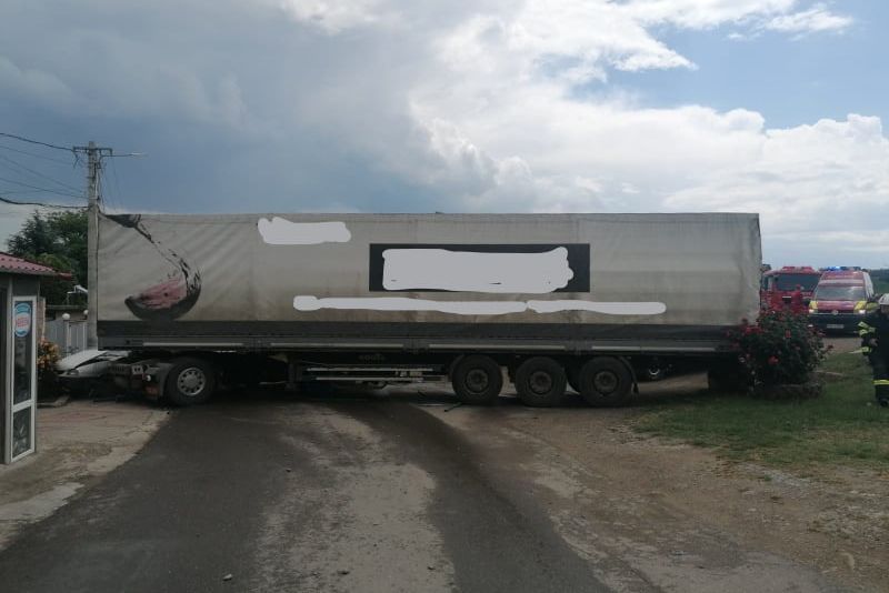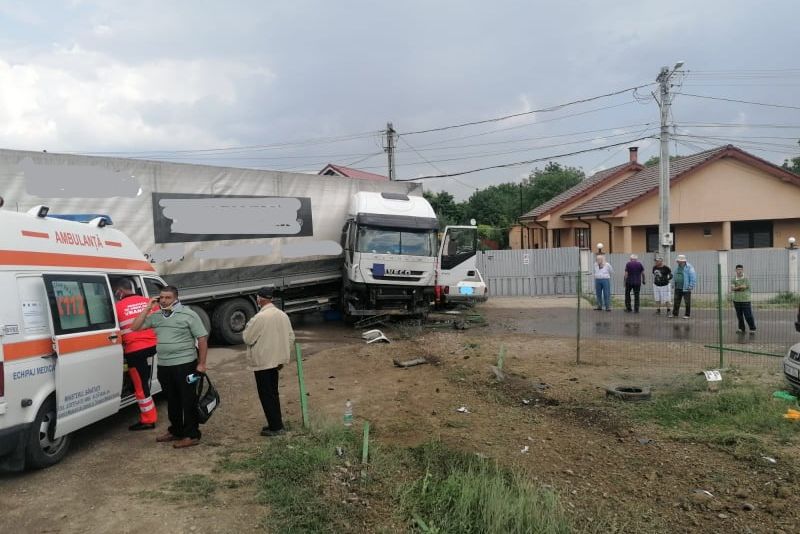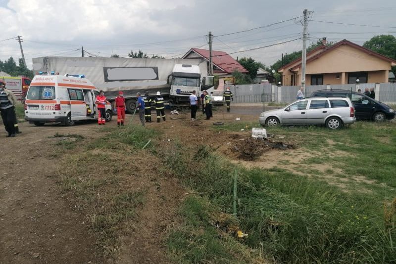 Accident cu patru persoane rănite, la Dumbrăveni. Un tir era cât pe ce să intre în curtea unei case