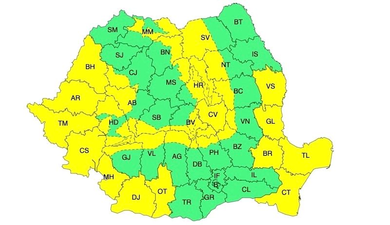 În județele Vrancea, Galați, Buzău, Brăila, Ialomița și Călărași vor fi intensificări puternice ale vântului cu rafale de 70...90 km/h, temporar va ninge viscolit, iar vizibilitatea va fi redusă.