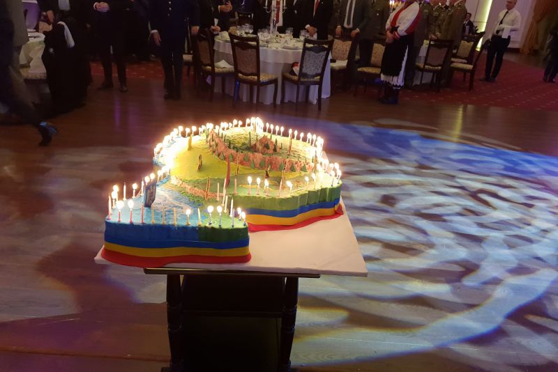 În timp ce participanții vrânceni, din popor, au primit fasole cu ciolan în Piața Unirii din Focșani, premierul României, Viorica Dăncilă, s-a delectat cu tort cu figurine din marțipan și caviar. Surpriza serii la Ballroom Grand`Or din Focșani, acolo unde a avut loc masa festivă, organizată de Marian Oprișan, a fost tortul Centenarului. Tortul, din înghețată și marțipan, a avut forma hărții României, cu 100 de lumânări. Tortul avea și figurine din marțipan, cu oameni îmbrăcați în costume populare, Obeliscul din Focșani, Arcul de Triumf, munți, copaci etc. De asemenea, tortul Centenarului era înconjurat de o ”eșarfă” tricoloră, tot din marțipan.