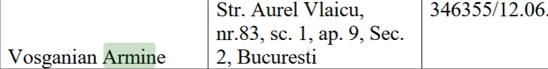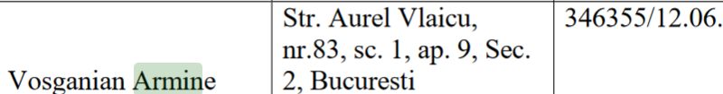 Fata demnitarului figurează de două ori cu titlu executoriu, cel mai probabil pentru casa din Focșani care a aparținut lui Bergi Vosganian, tatăl parlamentarului și bunicul lui Armine. Lista executărilor poate fi consultată AICI.Sursa foto: https://www.facebook.com/armine.vosganian