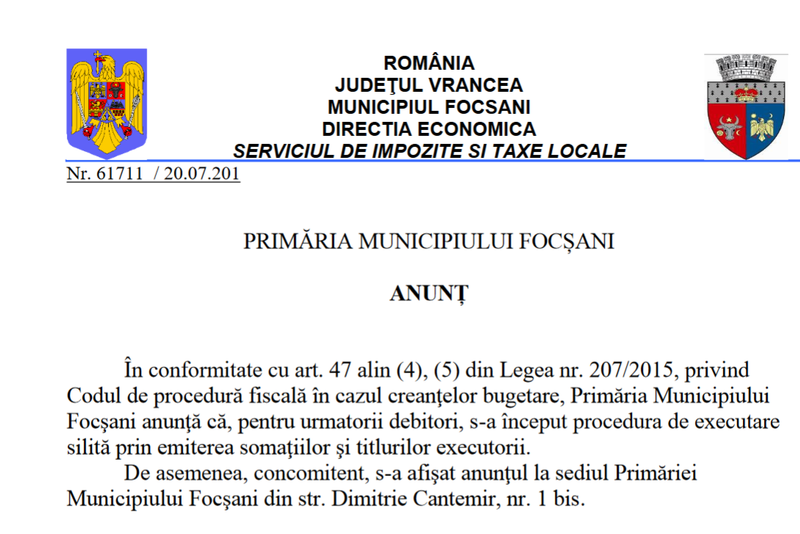 Fata lui Varujan Vosganian, executată silit de Primăria Focșani