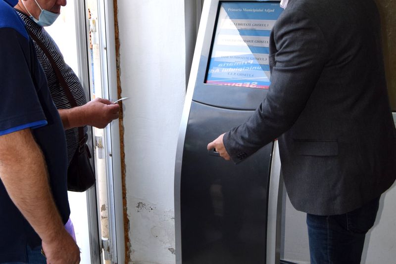 și asigură servicii de calitate pentru cetățeni.”1. De pe ecranul automatului poziționat în stânga intrării alegeți casieria la care doriți să plătiți (SALUBRITATE – Ghișeul 1, CASIERIE PRIMĂRIE – Ghișeul 2, TAXE ȘI IMPOZITE – Ghișeul 3 sau C.U.P. – Ghișeul 4).2. Ridicați bonul de ordine eliberat de automat.3. Din cauza măsurilor de distanțare impuse pe perioada stării de alertă, pentru a evita aglomerația în spațiile închise, avem rugămintea să așteptați în afara clădirii până când se va auzi în difuzor numărul de ordine inscripționat pe biletul de ordine. Numărul va apărea, de asemenea, atât pe ecranul deja amplasat în holul clădirii cât și pe cel din exteriorul acesteia (ultimul ecran urmează să fie amplasat zilele următoare).RUGĂMINTE: În situația în care doriți să plătiți la mai mult de 1 ghișeu, am rugămintea să solicitați bonurile de ordine pe rând, pentru a nu vă fi solicitată prezența la 2 ghișee concomitent.”, a transmis primarul municipiului Adjud.