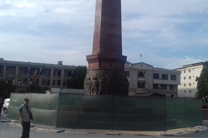 După încheierea Zilelor Municipiului Focșani, Piața Unirii a fost, din nou, ”ocupată”. De data aceasta au venit muncitorii firmei care va repara monumentul-simbol din centrul orașului. Astăzi, firma care a obținut contractul a început organizarea de șantier. Angajații societății au împrejmuit obeliscul cu plasă și au adus și un container mobil de locuit. Pentru aceste lucrări, Primăria Focșani a alocat peste 300.000 de lei.