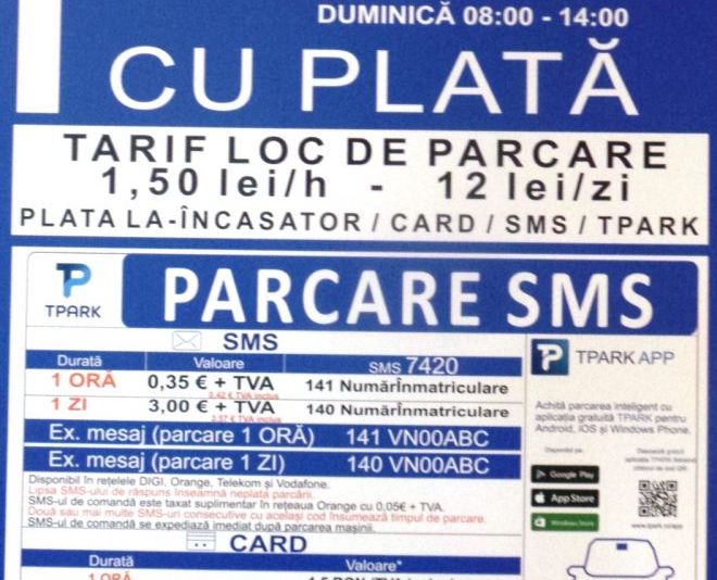 Autoritățile locale au anunțat introducerea sistemului modern de plată la parcările cu plată din municipiul Focșani. Practic, de azi înainte, prin sistemul TPark, orice persoană care folosește cele aproximativ 800 de locuri de parcare publice din municipiu poate plăti cu ajutorul telefonului mobil pentru perioada de staționare a autoturismului. “Este o formulă modernă, pe care ne-am dorit-o de foarte multă vreme să o implementăm și iată că a ajuns și vremea să o inaugurăm”, a declarat primarul Cristi Misăilă, în cadrul unei conferințe de presă. La rândul său, directorul SC Parking SA Focșani a spus că aplicația vine în ajutorul șoferilor, fiind un sistem simplu și eficient. “Plata poate fi făcută prin sms, trimițând un mesaj la 7420, însoțit de mesajul 141 și numărul de înmatriculare al mașinii, pentru o parcare de o oră, sau 140 și numărul de înmatriculare al mașinii, pentru o parcare de o zi. Cei care folosesc telefoane Smart vor putea instala aplicația. Plata poate fi făcută și prin intermediul cardului bancar. Este