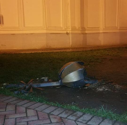 Pericol la paranghelia Focșaniului: o cruce de pe biserica din Piața Unirii a căzut de pe cupolă