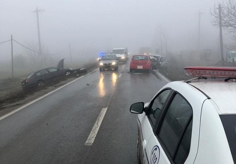 Două accidente în care au fost implicate opt autoturisme s-au produs în această dimineață, în județul Vrancea. Un carambol cu 5 mașini s-a produs în comuna Bizighești, pe DN2E85, un alt accident având loc în Mândrești, au fost implicate 3 autoturisme. Cel mai probabil, ceața densă și carosabilul umed au stat la baza producerii celor două accidente. Vom reveni cu amănunte.