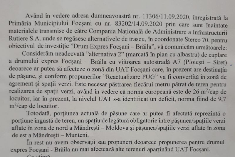 Una spune, alta face - primarul Focșaniului NU VREA drum expres Focșani - Brăila, invocând lipsa de spații verzi, pe care tot el a creat-o