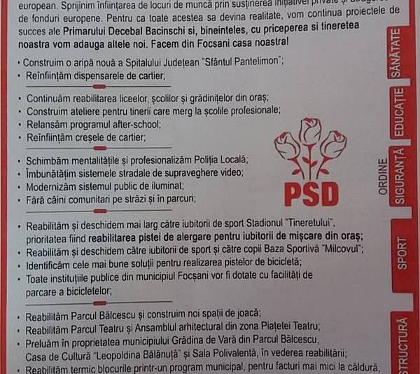 În campania electorală, primarul orașului Focșani, Cristi Misăilă (PSD) promitea câte în lună și în stele focșănenilor. La jumătate de mandat, Focșaniul e încremenit în proiecte pe hârtie, același spital comunist și doar DOUĂ CREȘE. Locurile de joacă sunt puține și deteriorate iar creșele sunt de pe vremea comunismului. În pliantul de campanie, primarul Misăilă promitea, printre altele, următoarele: