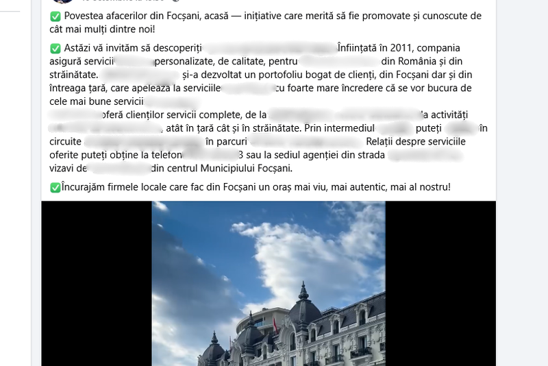 Conflict de interese? Primăria Focșani și Consiliul Județean Vrancea folosesc resurse de la buget pentru a face reclamă unor firme private.