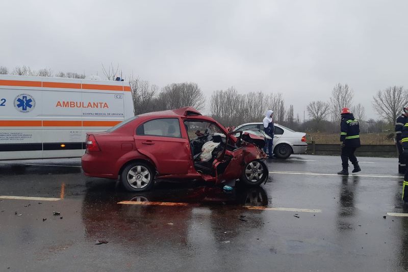Conducătorul unui autoturism care se deplasa pe banda de lângă acostament a prins acostamentul la trecerea pe lângă un microbuz care circula pe banda de lângă ax , după care a intrat în coliziune fața - spate cu un autovehicul cu remorcă, care a fost proiectat pe contrasens și a intrat în coliziune cu alte două autovehicule.Vom reveni cu amănunte.