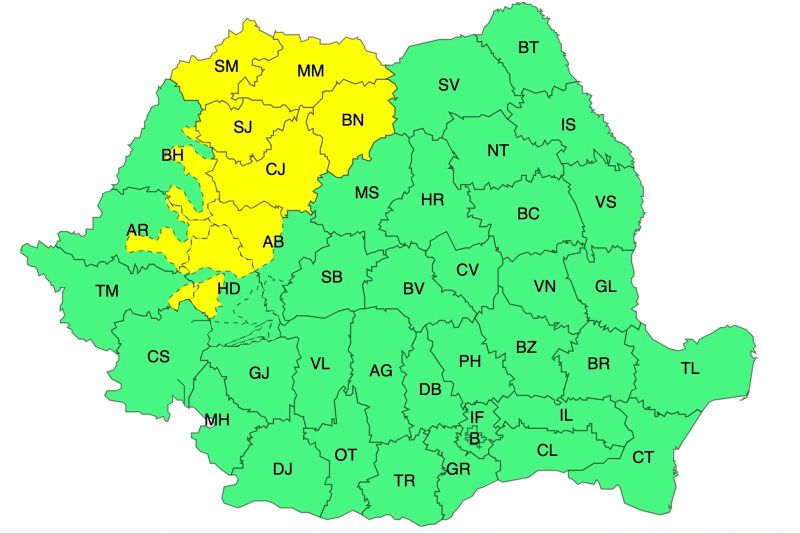 ATENȚIONARE METEOROLOGICĂ - COD GALBEN în intervalul 10 septembrie, ora 20 – 11 septembrie, ora 12