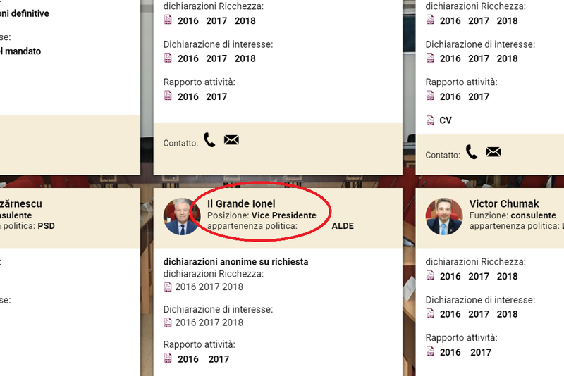 Bătaie de joc pe banii noștri: numele consilierilor județeni, de pe site-ul CJ Vrancea: Il Grande Ionel sau Liviu Pumpkin