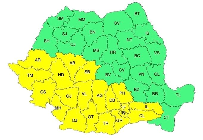 ATENȚIONARE METEOROLOGICĂ - COD GALBEN