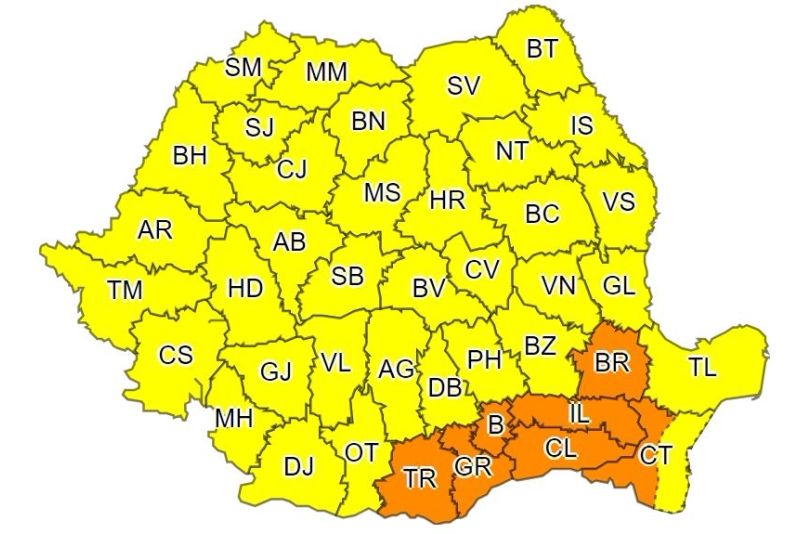 Zone afectate: județele Teleorman, Giurgiu, Călărași, Ialomița, Brăila, Constanța, Ilfov și municipiul București