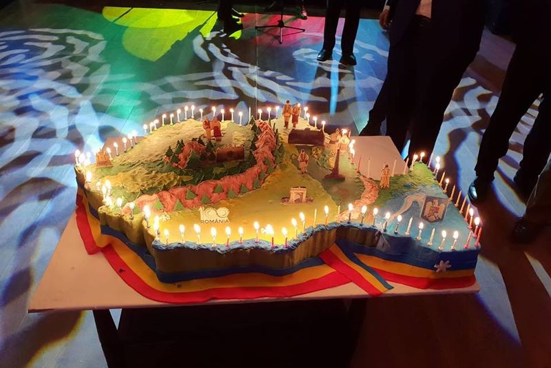 În timp ce participanții vrânceni, din popor, au primit fasole cu ciolan în Piața Unirii din Focșani, premierul României, Viorica Dăncilă, s-a delectat cu tort cu figurine din marțipan și caviar. Surpriza serii la Ballroom Grand`Or din Focșani, acolo unde a avut loc masa festivă, organizată de Marian Oprișan, a fost tortul Centenarului. Tortul, din înghețată și marțipan, a avut forma hărții României, cu 100 de lumânări. Tortul avea și figurine din marțipan, cu oameni îmbrăcați în costume populare, Obeliscul din Focșani, Arcul de Triumf, munți, copaci etc. De asemenea, tortul Centenarului era înconjurat de o ”eșarfă” tricoloră, tot din marțipan.