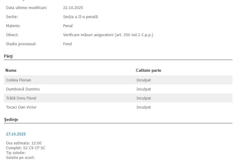 Curtea de Apel București va analiza lunea viitoare legalitatea măsurilor asigurătorii instituite de DNA în dosarul în care generalul Statului Paralel, Florian Coldea și oamenii din jurul său au fost trimiși în judecată pentru constituirea unui grup infracțional organizat.