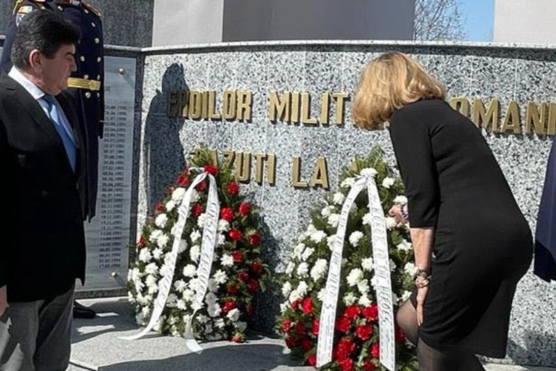 “Romania este un aliat foarte puternic al SUA. Stiu ce ați facut pentru oamenii din sistemul de aparare, ordine publica si siguranta nationala, pentru cei in activitate, pentru cei in rezerva si pentru urmasii militarilor decedati. Vreau sa va asigur de toata aprecierea mea pentru implicarea dumneavoastra. Sunt onoarata sa fiu astazi aici. Imi pare atat de rau pentru pierderea pe care ati suferit-o, prin moartea tatalui dumneavoastra, fost militar, cand aveati doar zece ani. Inteleg aceasta durere profunda si va sunt alaturi cu tot sufletul. Suntem in familie, toti cei care am pierdut, în Armata, pe cineva drag. Sunt onorata sa vizitez Monumentul Eroilor pe care l-ati ridicat pentru a cinsti eroii militari, asa cum se cuvine. Ne dorim foarte mult ca Romania sa fie inclusa usa in programul pe care l-am initiat, TAPS, si va multumesc pentru ca ne asigurati suportul dumneavoastra in acest demers. Putem invata foarte mult unii de la altii. Apreciez ospitalitatea romanilor. Iubesc Romania, iubesc oamenii din Romania.