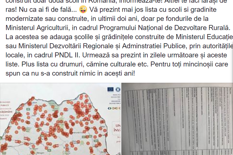 Ministrul Muncii, Olguța Vasilescu, a anunțat, pe pagina de facebook, lista cu școli și grădinițe modernizate sau construite, în ultimii doi ani, doar pe fondurile de la Ministerul Agriculturii, în cadrul Programului Național de Dezvoltare Rurală. La acestea se adaugă școlile și grădinițele construite de Ministerul Educației sau Ministerul Dezvoltării Regionale și Adminstrației Publice, prin autoritățile locale, în cadrul PNDL II. Din păcate, grădinițele care figurează în Vrancea ca făcute sau modernizate nu sunt nici la stadiul de fundație. Este cazul grădiniței cu program prelungit care ar fi trebuit să fie construită, PNDL, în satul Vidra, comuna Vidra care, în actele Ministerului figurează ca executată, în teren însă neexistând. Licitația pentru construcția noului local de grădiniță nu a avut loc. Și la Sihlea, aceeași situație.