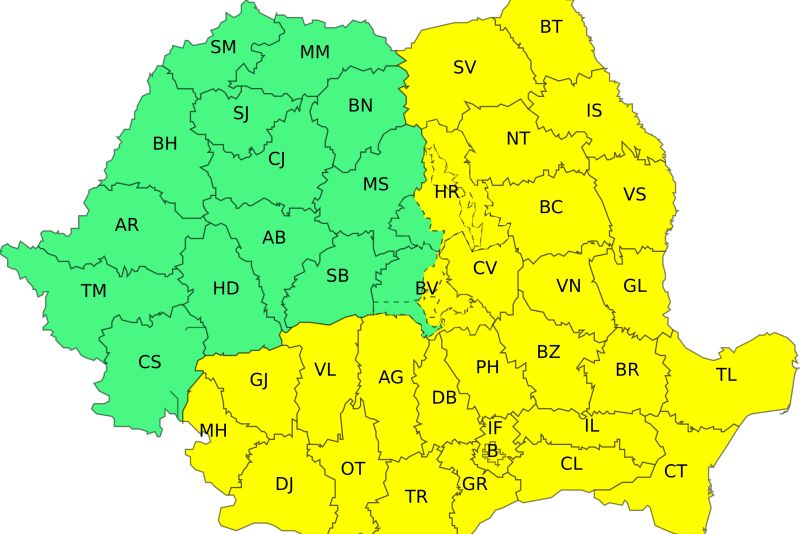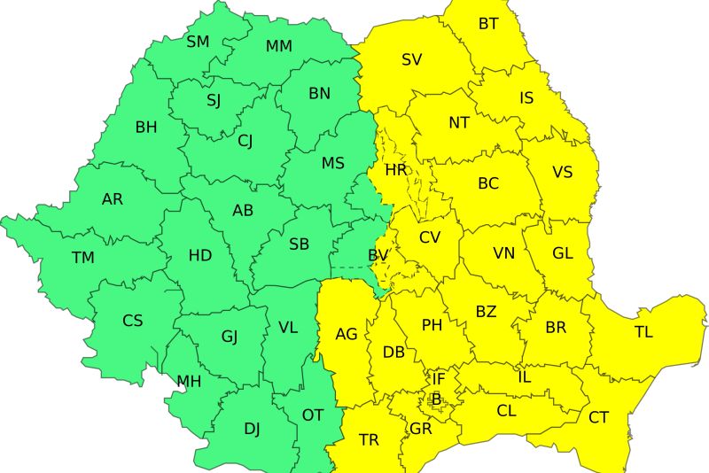 În noaptea de marți spre miercuri, sunt așteptate precipitații mixte în centrul și nord-estul țării, unde, pe suprafețe restrânse, se poate forma polei sau ghețuș.