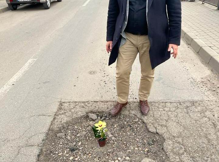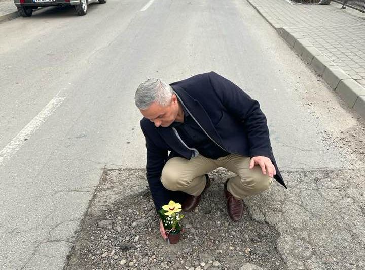 FOTO PNL Focșani a pus flori în gropile din oraș, protestând față de felul în care arată urbea