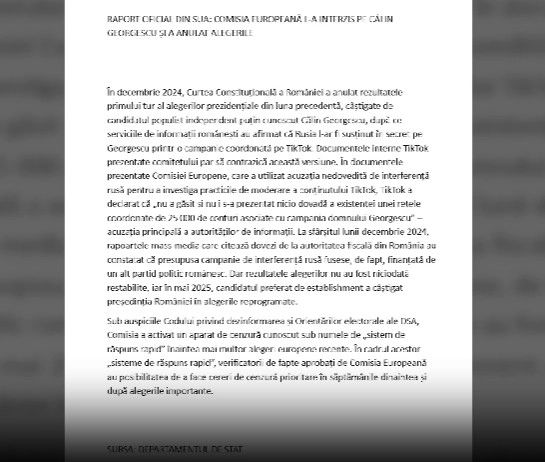 Documentele interne arată, de asemenea, că înainte de alegerile anulate, autoritățile de reglementare române împuternicite în temeiul DSA au acționat pentru a reduce la tăcere conținutul care susținea candidații populiști și naționaliști, inclusiv prin ordine globale de eliminare a conținutului. După alegeri, pe măsură ce au început să circule acuzații încă nefondate de interferență rusă, Comisia a acționat rapid, deschizând o anchetă oficială DSA cu privire la practicile de moderare ale TikTok în ceea ce privește discursul politic. Înaintea alegerilor din 2024, autoritățile române au făcut în repetate rânduri solicitări de eliminare a conținutului în afara procesului oficial DSA, folosind interpretări extinse ale propriilor competențe pentru a impune eliminarea conținutului politic. După cum a declarat ulterior TikTok Comisiei Europene, platforma era „reticentă față de abordarea foarte informală” a cererilor de eliminare „adoptată de [Autoritatea Electorală Română] în contextul alegerilor din România, în special față de potențialul de influență politică asupra procesului și/sau eliminarea nejustificată a conținutului legal (cum ar fi discursurile politice)”.