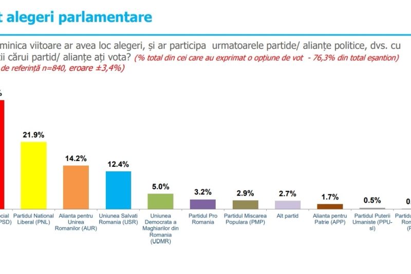 Formațiunea condusă de Marcel Ciolacu ar câștiga detașat alegerile, dacă ar avea loc duminica viitoare, cu peste 35%
